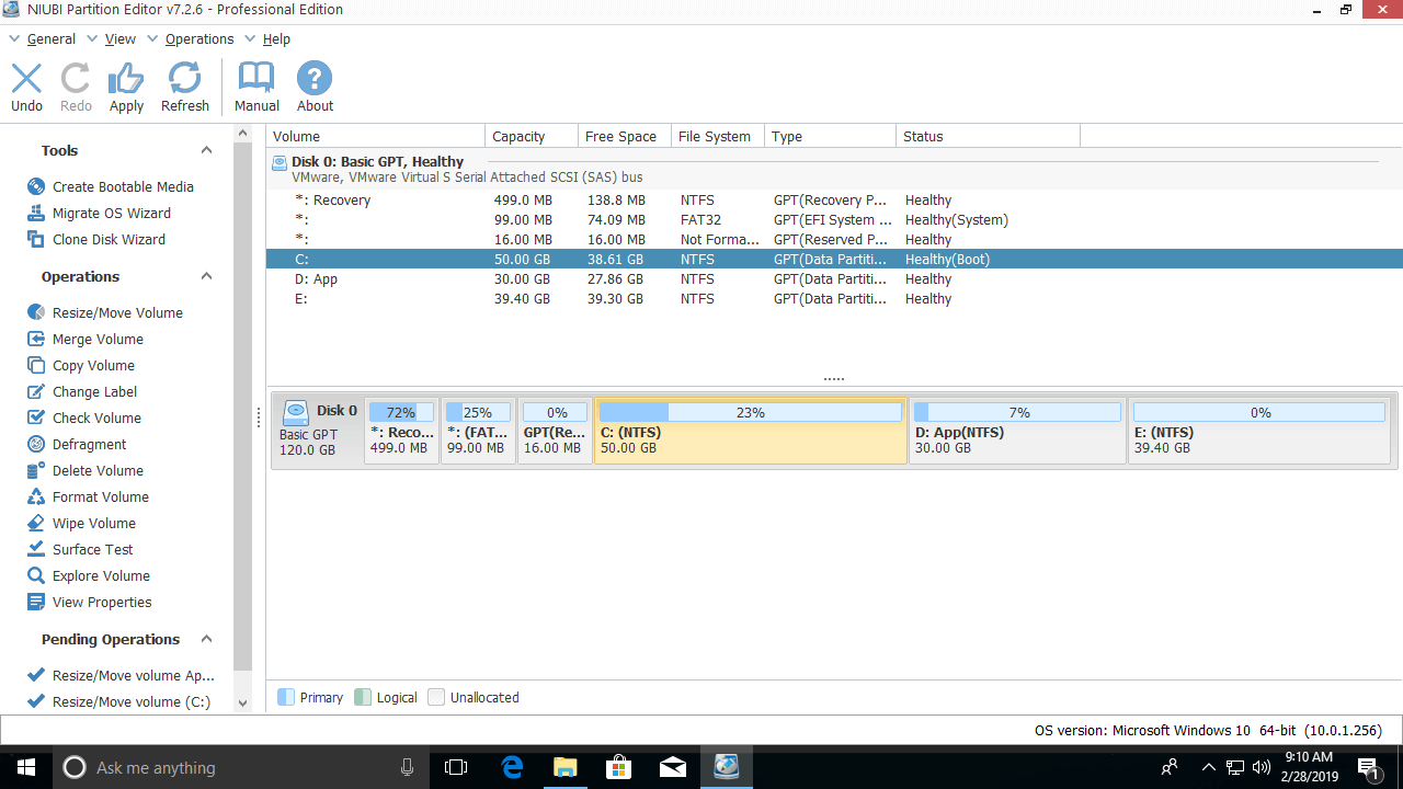 Because of the limitation of Shrink and Extend Volume, Disk Management cannot extend C drive with unallocated space that shrunk from D or other partitions. With NIUBI Partition Editor, you can move and add unallocated space to C drive easily and safely. It also helps you do many other disk and partition management operations.