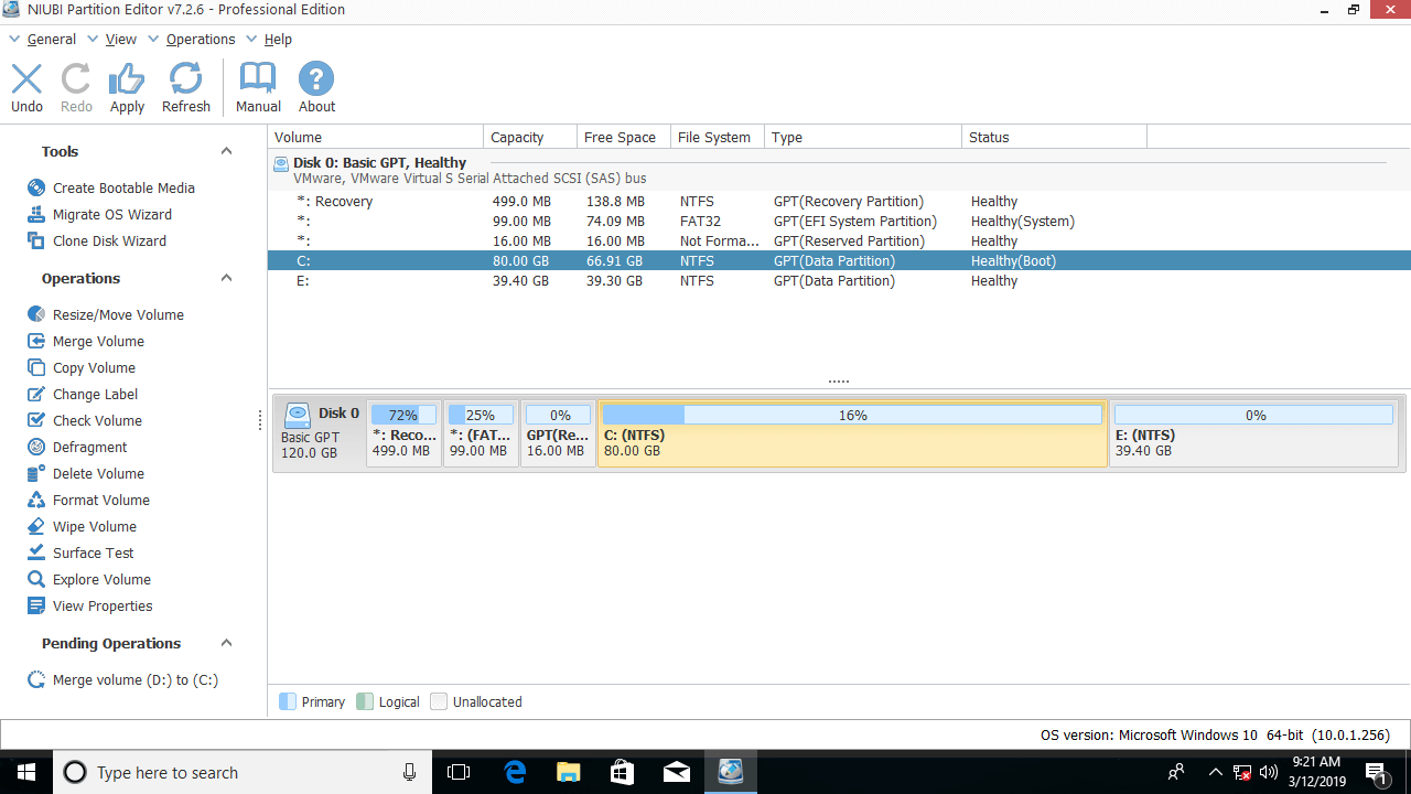 Besides merging, shrinking and extending partitions, NIUBI Partition Editor helps do many other disk partition management operations such as copy, convert, hide, wipe, defrag, scan bad sectors.