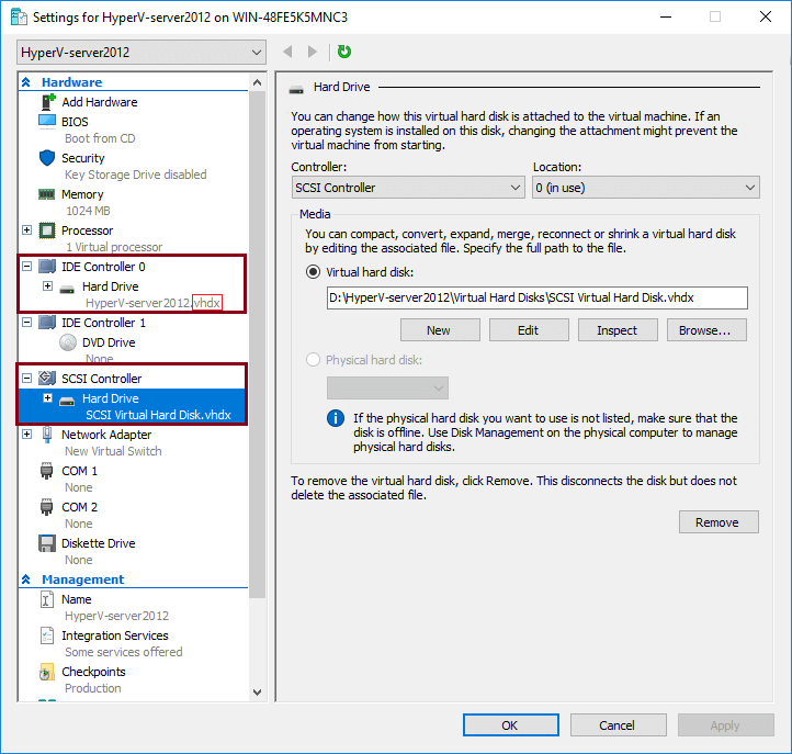 How to check the type and controller of your virtual disk: