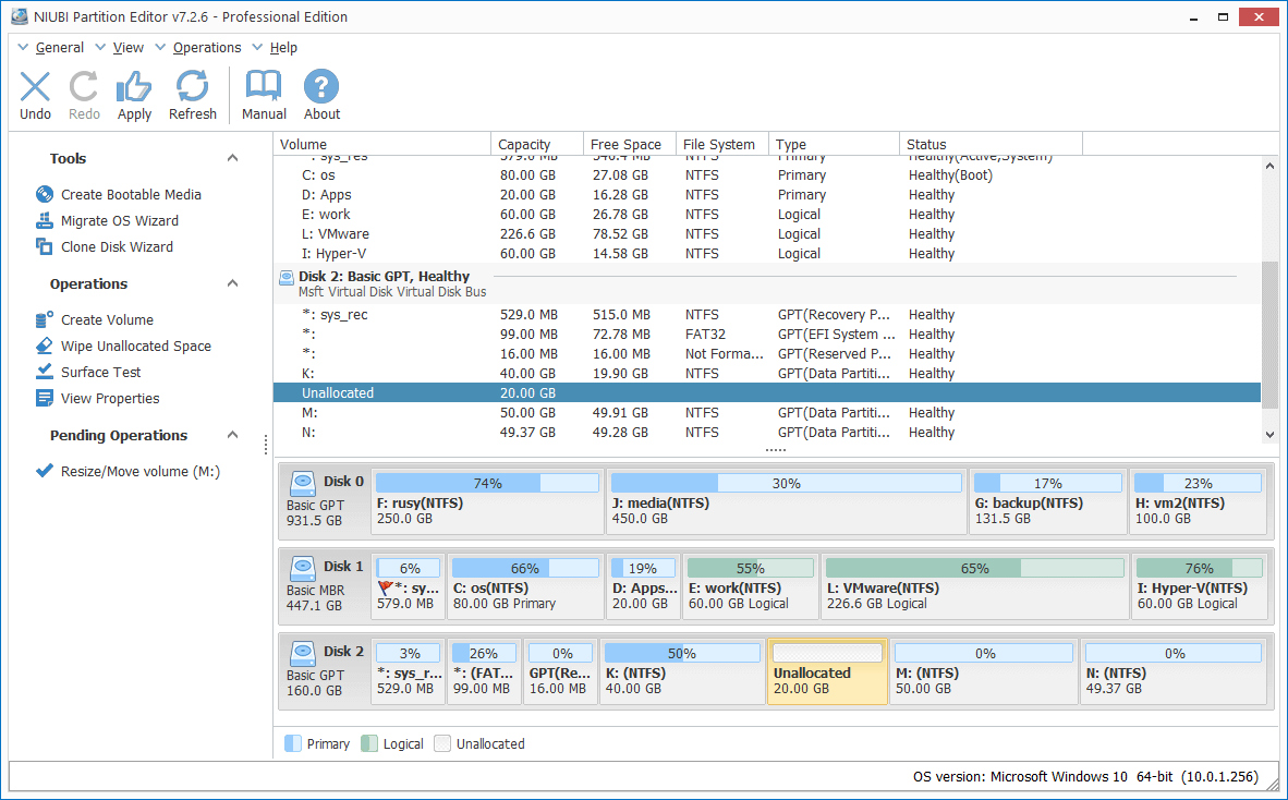 Besides resizing physical and virtual disk partition, NIUBI Partition Editor helps do many other operations.