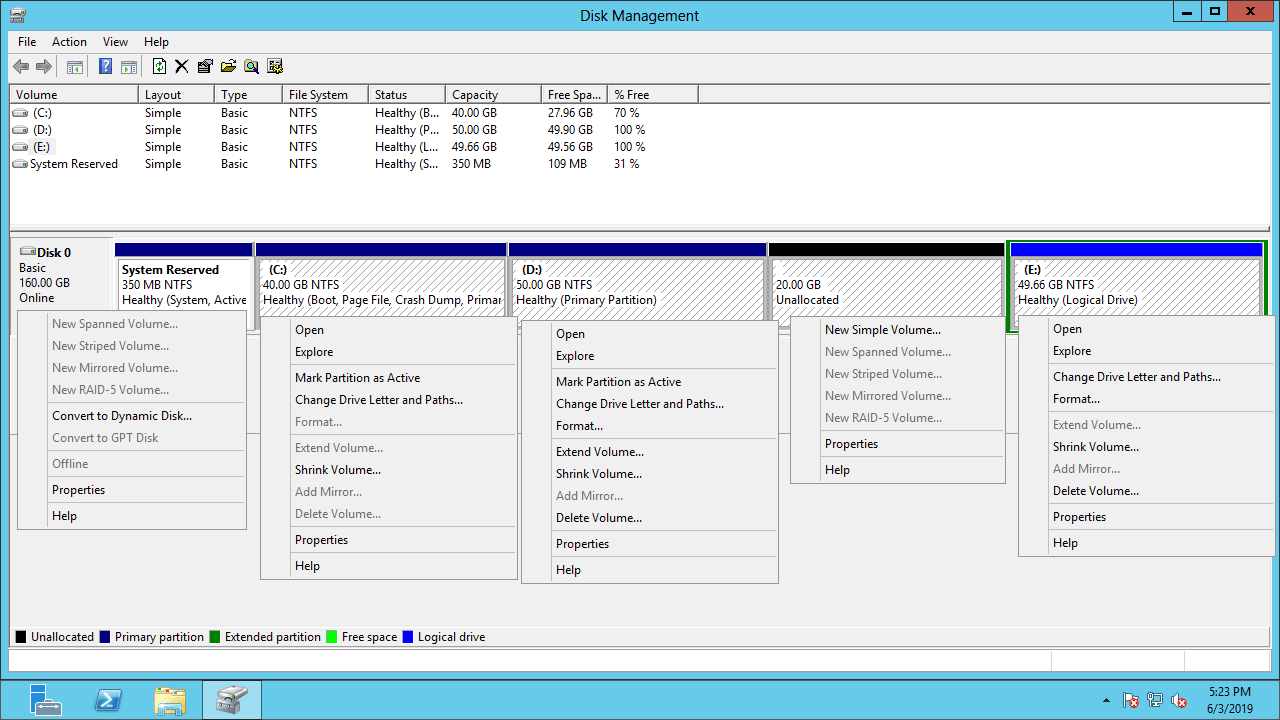 Inbuilt disk partition tool in Server 2012/2016