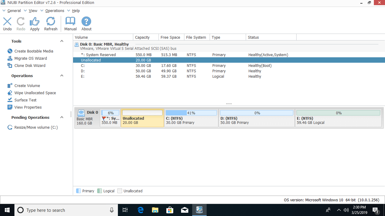 Better than other tools, NIUBI Partition Editor has unique 1 Second Rollback technology, it is able to reverts computer to original status in a flash automatically if it detects any error. It also has Virtual Mode, Cancel-at-will and advanced file-moving algorithm to help resize partitions more safely and much faster. Besides shrinking and extending partition, it helps you copy, merge, convert, hide, defrag, wipe partition, scan bad sector, optimize file system etc.