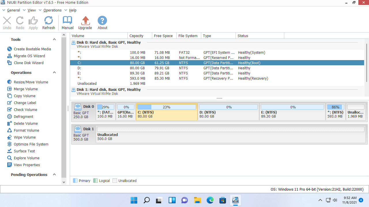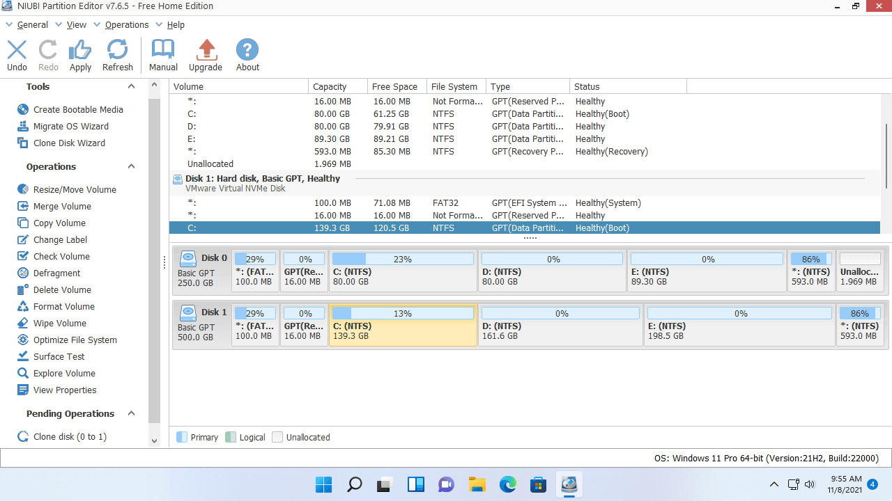 NIUBI Partition Editor uses the fast file system level copy method and it has advanced file-moving algorithm. It helps move and copy partition 30% to 300% faster than other similar tools. Besides clone disk partition in Windows 11, it has the ability to shrink, extend, move, merge, convert, defrag, wipe, hide partition, scan bad sectors, optimize file system, etc. It has free edition for Windows 11/10/8/7/Vista/XP home computer users.