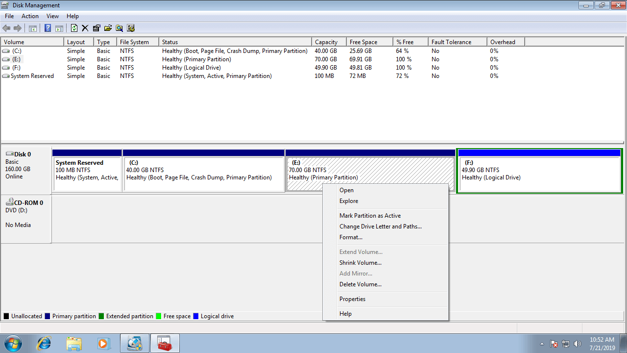 Win7 disk management