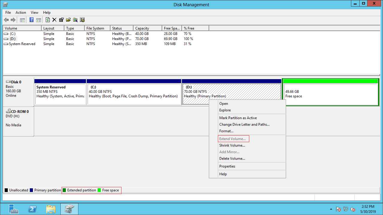 How to address Extend Volume greyed out on Server 2012/2016/2019/2022: